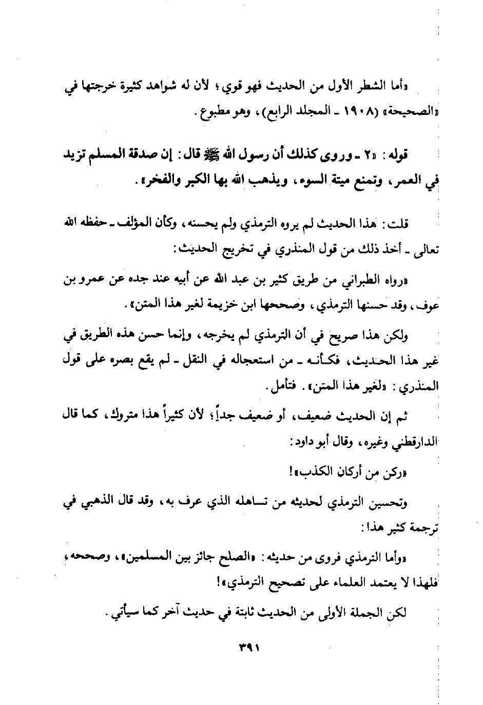 قوله: 2 - وروى كذلك أن رسول الله صلى الله عليه وسلم قال: "إن صدقة المسلم تزيد في العمر وتمنع ميتة السوء ويذهب الله بها الكبر والفخر".