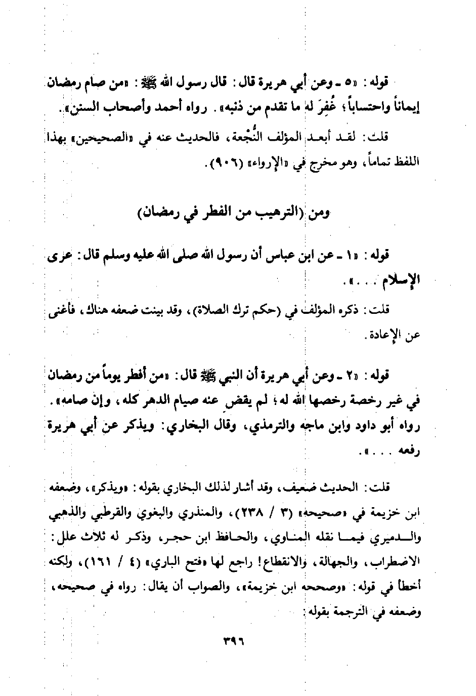 ومن الترهيب من الفطر في رمضان