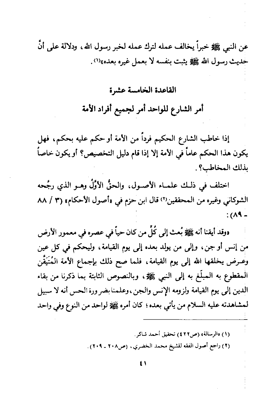 1 راجع أصول الفقه للشيخ محمد الخضرى ص 208 – 209.