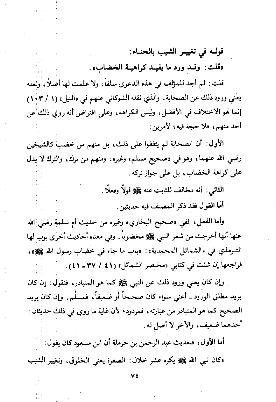 "قلت: وقد ورد ما يفيد كراهية الخضاب".