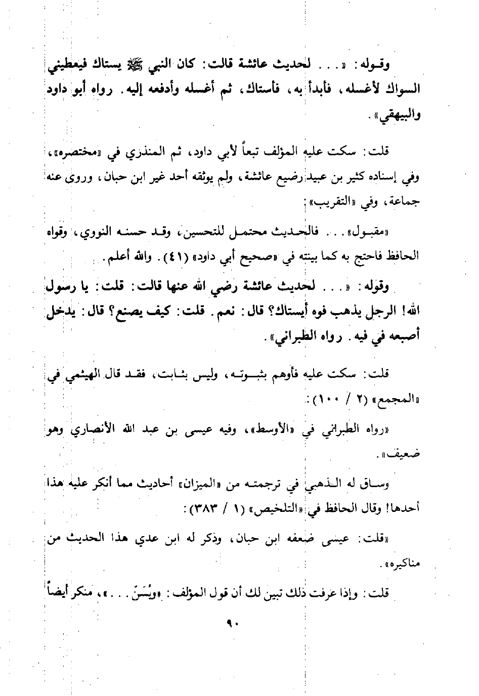 وقوله: ... لحديث عائشة قالت: كان النبي صلى الله عليه وسلم يستاك فيعطيني السواك لأغسله فأبدأ به ثم أغسله وأدفعه إليه.