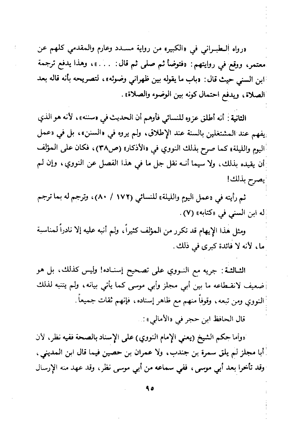 الثالثة: جريه مع النووي على تصحيح إسناده وليس كذلك بل هو ضعيف لانقطاعه ما بين أبي مجلز وأبي موسى كما يأتي بيانه ولم يتنبه لذلك النووي ومن تبعه وقوفا منهم مع ظاهر إسناده فإنهم ثقات جميعا.