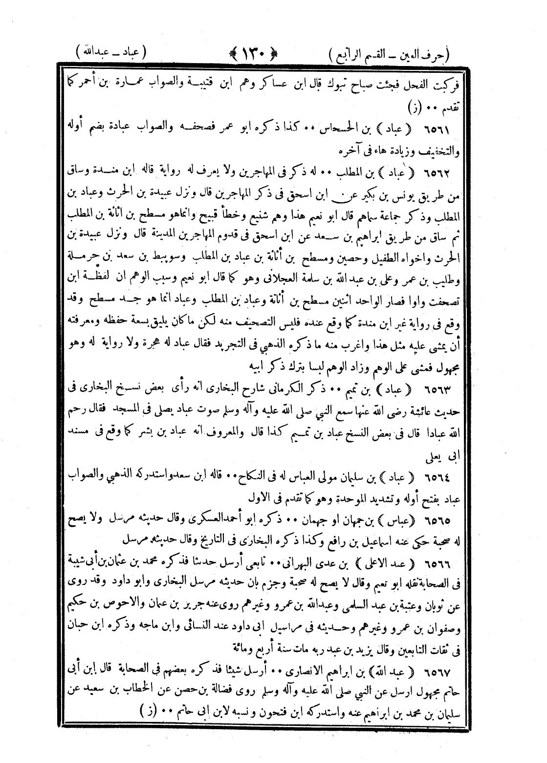 <130> فركبت الفحل فجئت صباح تبوك قال بن عساكر وهم فيها بن قتيبة والصواب عمارة بن احمر كما تقدم عباد بن الحسحاس كذا ذكره أبو عمر فصحفه والصواب عبادة بضم أوله والتخفيف وزيادة هاء في آخره عباد بن المطلب له ذكر في المهاجرين ولا يعرف له رواية قاله بن منده وساق من طريق يونس بن بكير عن بن إسحاق في ذكر المهاجرين قال ونزل عبيدة بن الحارث وعباد بن المطلب وذكر جماعة سماهم قال أبو نعيم هذا وهم شنيع وخطأ قبيح وانما هو مسطح بن اثاثة بن المطلب ثم ساق من طريق إبراهيم عن سعد بن إسحاق في قدوم المهاجرين المدينة قال ونزل عبيدة بن الحارث وأخواه الطفيل وحصين ومسطح بن اثاثة بن عباد بن المطلب وسويبط بن سعد بن حرملة وطليب بن عمرو على بن عبد الله بن سلمة العجلاني وهو كما قال أبو نعيم وسبب الوهم ان لفظة بن تصحفت واوا فصار الواحد اثنين مسطح بن اثاثة وعباد بن المطلب وعباد إنما هو جده مسطح وقد وقع في رواية غير بن منده كما وقع عنده فليس التصحيف منه لكن ما كان يليق بسعة حفظه ومعرفته ان يمشي عليه مثل هذا وأغرب منه ما ذكر الذهبي في التجريد فقال عباد له هجرة ولا رواية له وهو مجهول فمشى على الوهم وزاد الوهم لبسا بترك ذكر أبيه عباد بن تميم ذكر الكرماني شارح البخاري انه رأى بعض نسخ البخاري في حديث عائشة رضي الله عنها سمع النبي صلى الله عليه وسلم صوت عباد يصلى في المسجد فقال رحم الله عبادا قال في بعض النسخ عباد بن تميم كذا قال والمعروف انه عباد بن بشر كما وقع في مسند أبي يعلى عبادة بن سليمان مولى العباس له في النكاح قاله بن سعد واستدركه الذهبي والصواب عباد بفتح أوله وتشديد الموحدة وهو كما تقدم في الأول عباس بن جمهان أو جهمان ذكره أبو احمد العسكري وقال حديثه مرسل ولا تصح له صحبة حكى عنه إسماعيل بن رافع وكذا ذكره البخاري في التاريخ وقال حديثه مرسل عبد الأعلى بن عدي البهراني تابعي أرسل حديثا فذكره محمد بن عثمان بن أبي شيبة في الصحابة نقله أبو نعيم وقال لا تصح له صحبة وجزم بان حديثه مرسل البخاري وأبو داود وقد روى عن ثوبان وعتبة بن عبد السلمي وعبد الله بن عمرو وغيرهم روى عنه حريز بن عثمان والاحوص بن حكيم وصفوان بن عمرو وغيرهم وحديثه في مراسيل أبي داود عند النسائي وابن ماجة وذكره بن حبان في ثقات التابعين وقال يزيد بن عبد ربه مات سنة أربع ومائة عبد الله بن إبراهيم الأنصاري أرسل شيئا فذكره بعضهم في الصحابة وقال بن أبي حاتم مجهول أرسل عن النبي صلى الله عليه وسلم روى فضالة بن حصن عن الخطاب بن سعيد عن سليمان بن محمد بن إبراهيم عنه واستدركه بن فتحون ونسبه لابن أبي حاتم §