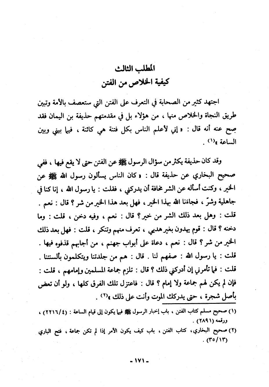 (¬2) صحيح البخاري، كتاب الفتن، باب كيف يكون الأمر إذ لم تكن جماعة، فتح الباري (13/35) .