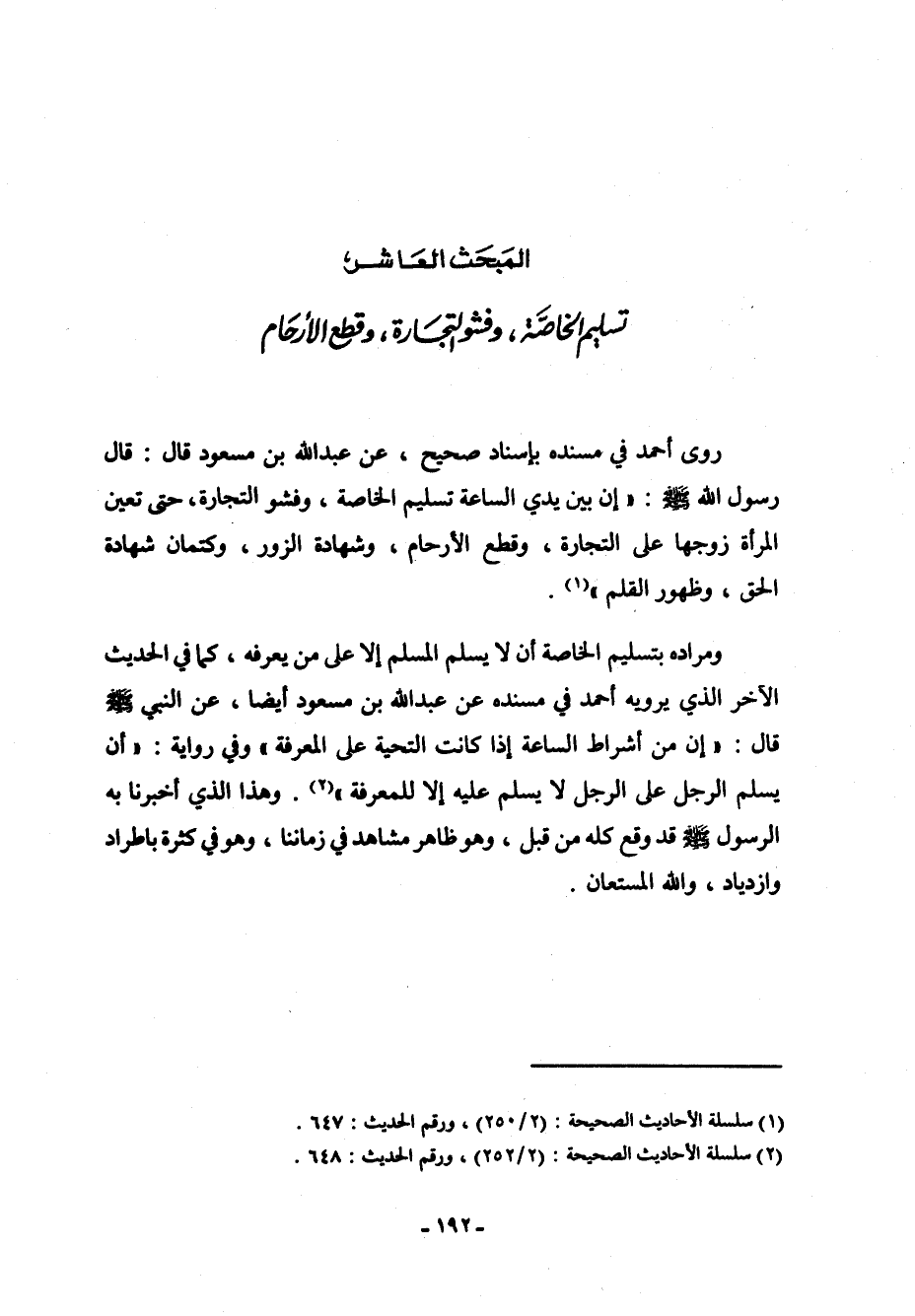 تسليم الخاصَّة، وفشو التجَارة، وقطع الأرحََام
