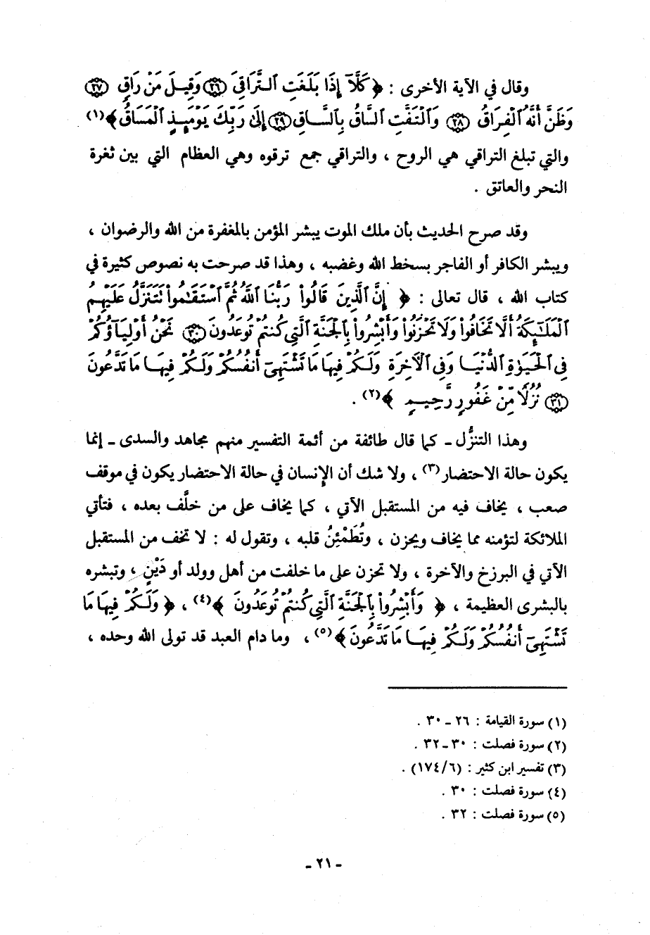وقال في الآية الأخرى: (كَلَّا إِذَا بَلَغَتْ التَّرَاقِيَ - وَقِيلَ مَنْ رَاقٍ - وَظَنَّ أَنَّهُ الْفِرَاقُ - وَالْتَفَّتِ السَّاقُ بِالسَّاقِ - إِلَى رَبِّكَ يَوْمَئِذٍ الْمَسَاقُ) [القيامة: 26-30] والتي تبلغ التراقي هي الروح، والتراقي جمع ترقوة وهي العظام التي بين ثغرة النحر والعانق.