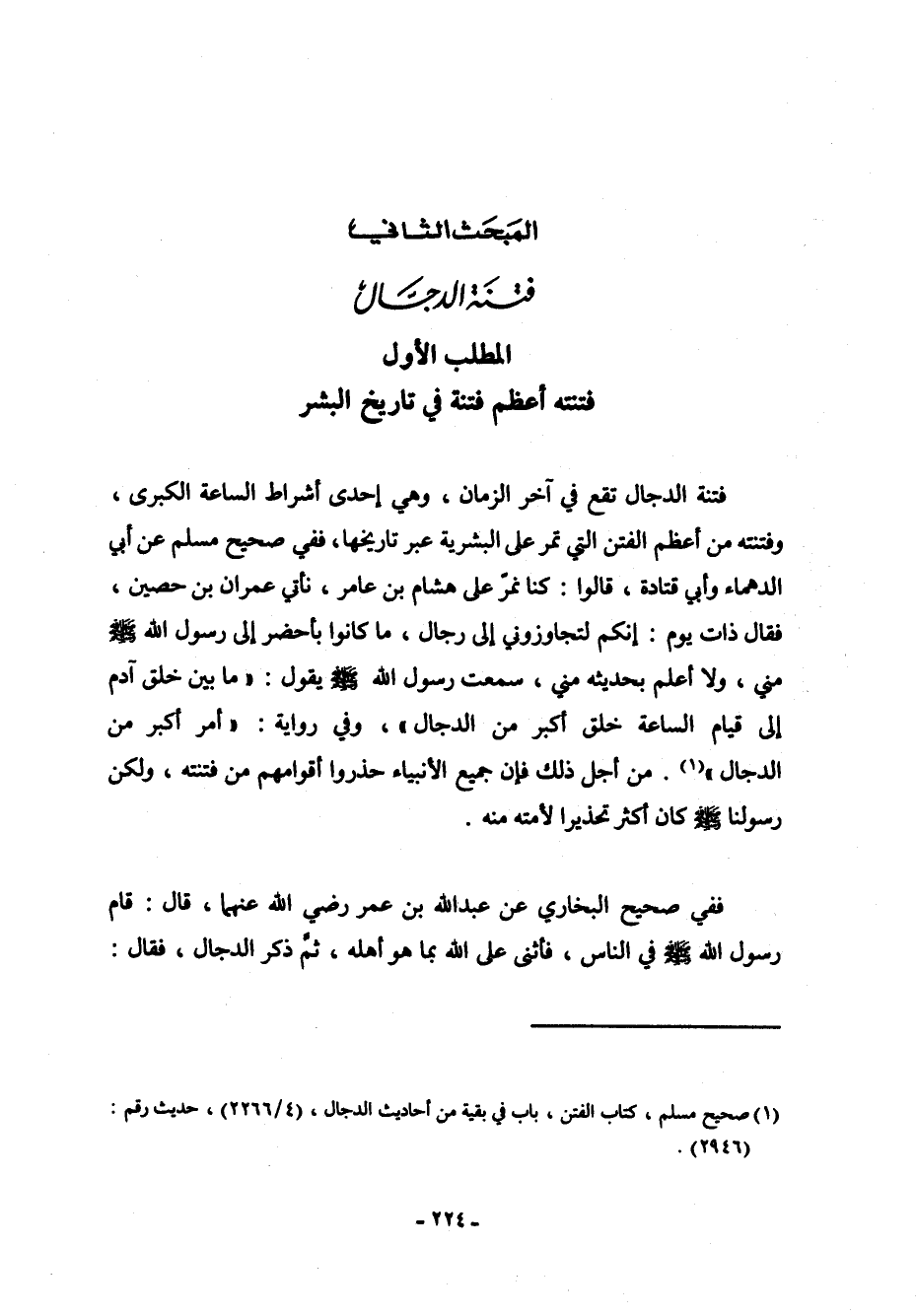 (¬1) صحيح مسلم، كتاب الفتن، باب في بقية من أحاديث الدجال، (4/2266) ، حديث رقم: (2946) .