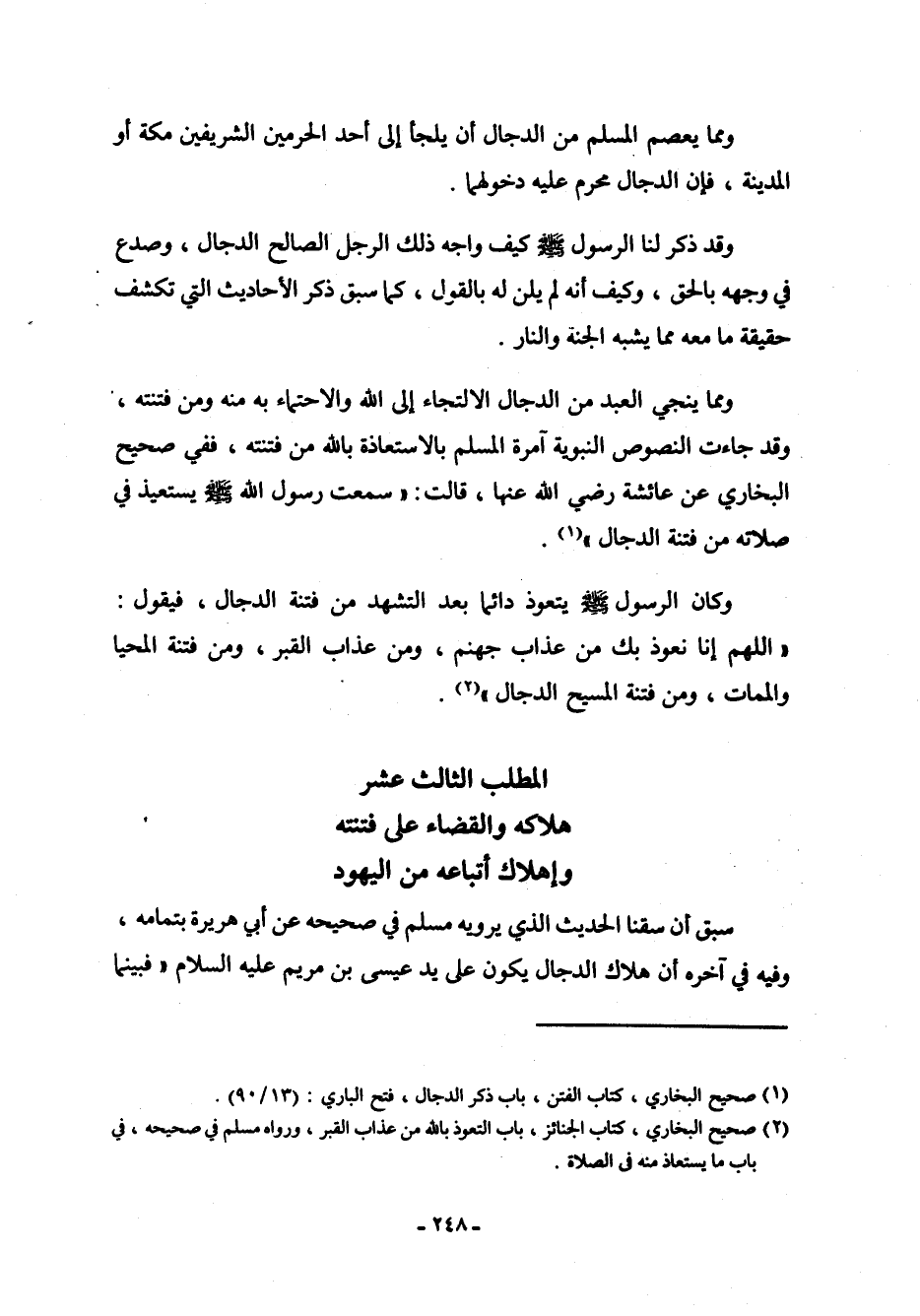 (¬1) صحيح البخاري، في كتاب الفتن، باب ذكر الدجال، فتح الباري: (13/90) .