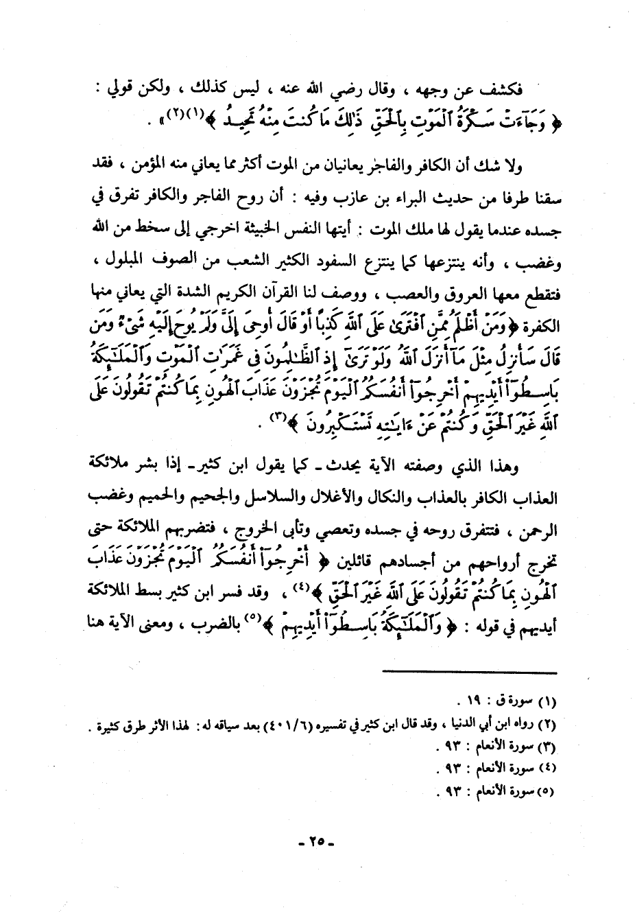 ووصف لنا القرآن الكريم الشدة التي يعاني منها الكفرة (وَمَنْ أَظْلَمُ مِمَّنِ افْتَرَى عَلَى اللهِ كَذِبًا أَوْ قَالَ أُوْحِيَ إِلَيَّ وَلَمْ يُوحَ إِلَيْهِ شَيْءٌ وَمَن قَالَ سَأُنزِلُ مِثْلَ مَا أَنَزلَ اللهُ وَلَوْ تَرَى إِذِ الظَّالِمُونَ فِي غَمَرَاتِ الْمَوْتِ وَالْمَلآئِكَةُ بَاسِطُواْ أَيْدِيهِمْ أَخْرِجُواْ أَنفُسَكُمُ الْيَوْمَ تُجْزَوْنَ عَذَابَ الْهُونِ بِمَا كُنتُمْ تَقُولُونَ عَلَى اللهِ غَيْرَ الْحَقِّ وَكُنتُمْ عَنْ آيَاتِهِ تَسْتَكْبِرُونَ) [الأنعام: 93] .