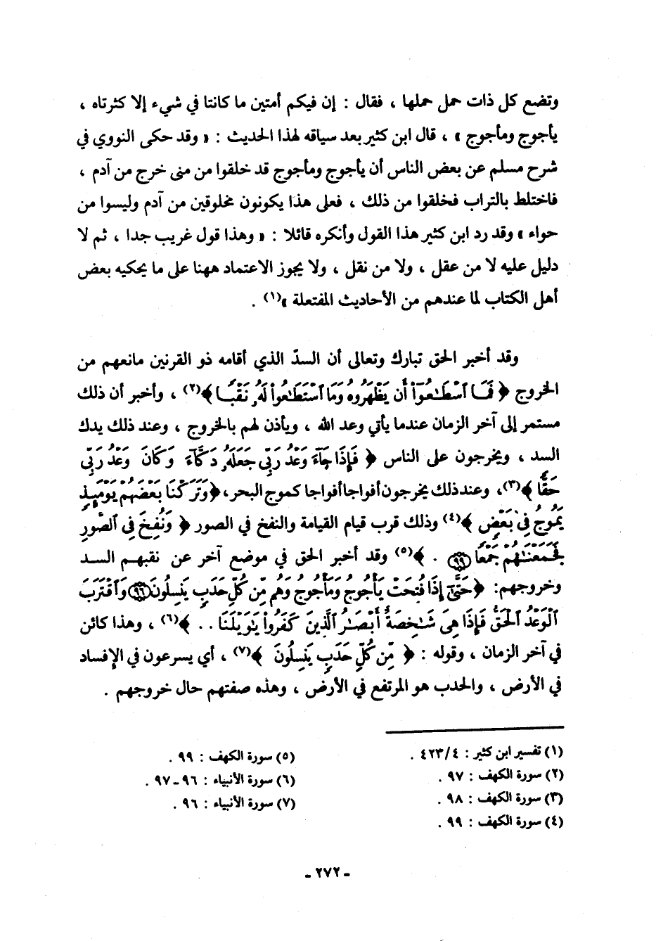 وقد أخبر الحق تبارك وتعالى أن السَّد الذي أقامه ذو القرنين مانعهم من الخروج: (فَمَا اسْطَاعُوا أَن يَظْهَرُوهُ وَمَا اسْتَطَاعُوا لَهُ نَقْبًا) [الكهف: 97] ، وأخبر أن ذلك مستمر إلى آخر الزمان عندما يأتي وعد الله، ويأذن لهم بالخروج، وعند ذلك يدك السد، ويخرجون على الناس (فَإِذَا جَاء وَعْدُ رَبِّي جَعَلَهُ دَكَّاء وَكَانَ وَعْدُ رَبِّي حَقًّا) [الكهف: 98] ، وعند ذلك يخرجون أفواجاً أفواجاُ كموج البحر (وَتَرَكْنَا بَعْضَهُمْ يَوْمَئِذٍ يَمُوجُ فِي بَعْضٍ) [الكهف: 99] وذلك قرب قيام القيامة والنفخ في الصور (وَنُفِخَ فِي الصُّورِ فَجَمَعْنَاهُمْ جَمْعًا) [الكهف: 99] .