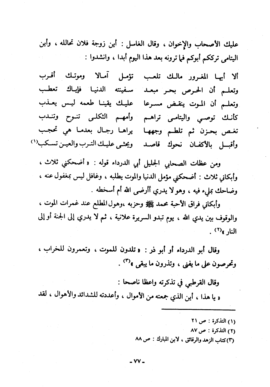 وقال القرطبي في تذكرته واعظاً ناصحاً: