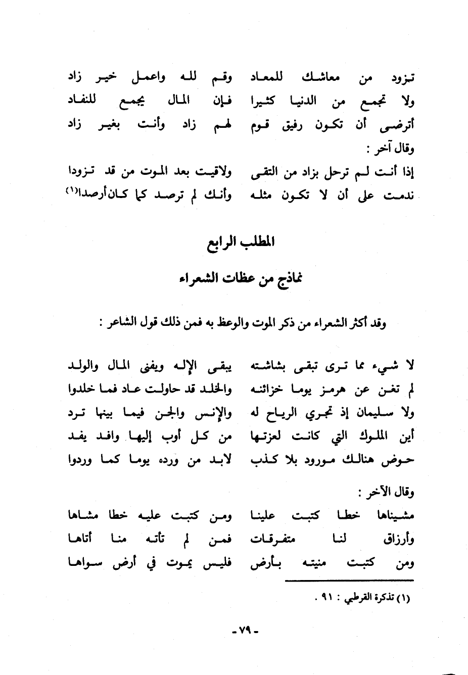 وقد أكثر الشعراء من ذكر الموت والوعظ به، فمن ذلك قول الشاعر: