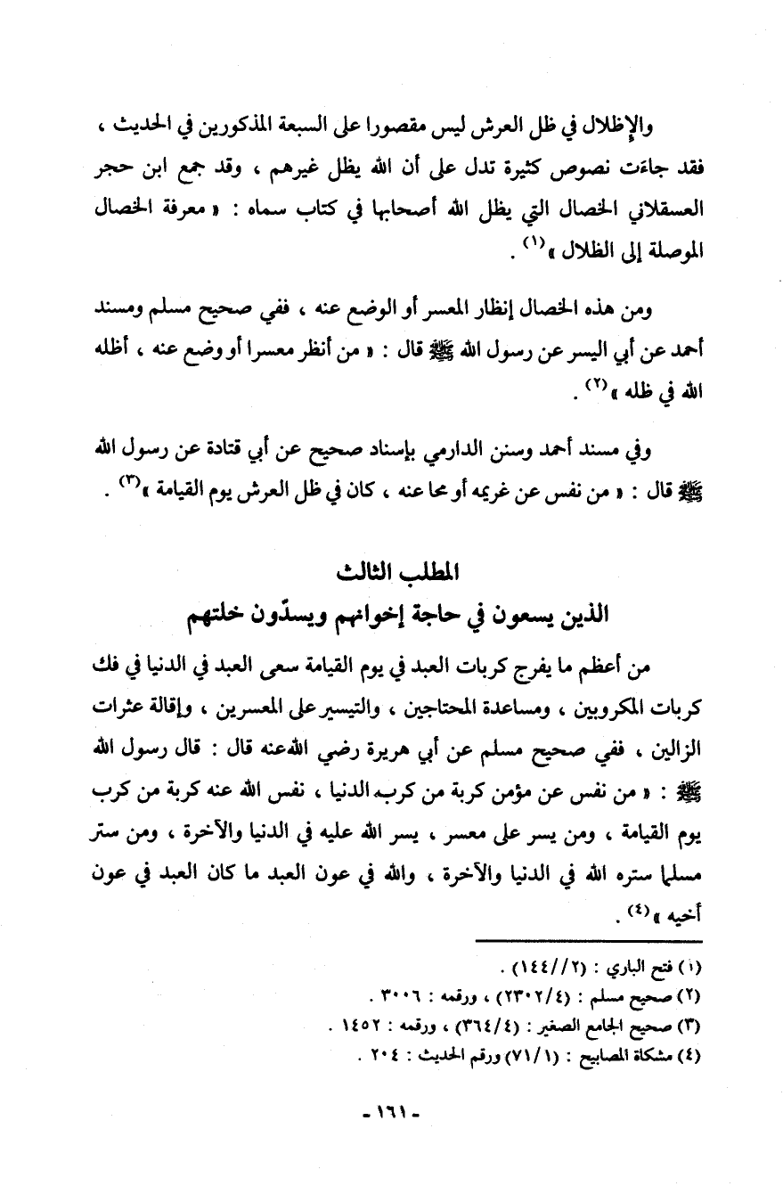 والإضلال في ظل العرش لي مقصوراً على السبعة المذكورين في الحديث، فقد جاءت النصوص كثيرة تدل على أن الله يظل غيرهم، وقد جمع ابن حجر العسقلاني الخصال التي يظل الله أصحابها في كتاب سماه: ((معرفة الخصال الموصلة إلى الظلال)) (¬1) .