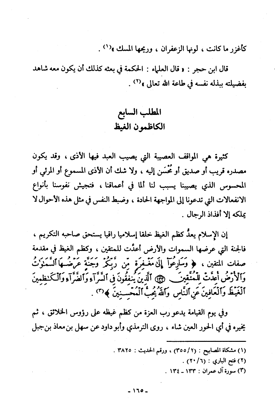 إن الإسلام يعدُّ كظم الغيظ خلقاً إسلامياً راقياً يستحق صاحبه التكريم، فالجنة التي عرضها السماوات والأرض أعدت للمتقين، وكظم الغيظ في مقدمة صفات المتقين (وَسَارِعُواْ إِلَى مَغْفِرَةٍ مِّن رَّبِّكُمْ وَجَنَّةٍ عَرْضُهَا السَّمَاوَاتُ وَالأَرْضُ أُعِدَّتْ لِلْمُتَّقِينَ - الَّذِينَ يُنفِقُونَ فِي السَّرَّاء وَالضَّرَّاء وَالْكَاظِمِينَ الْغَيْظَ وَالْعَافِينَ عَنِ النَّاسِ وَاللهُ يُحِبُّ الْمُحْسِنِينَ) [آل عمران: 133-134] .