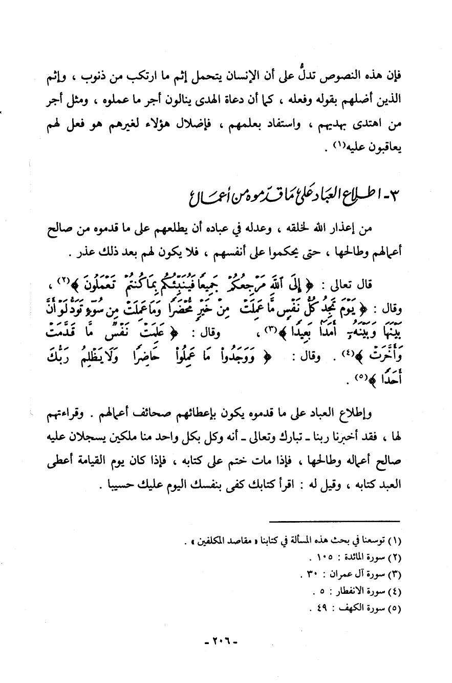 قال تعالى: (إِلَى اللهِ مَرْجِعُكُمْ جَمِيعًا فَيُنَبِّئُكُم بِمَا كُنتُمْ تَعْمَلُونَ) [المائدة: 105] ، وقال: (يَوْمَ تَجِدُ كُلُّ نَفْسٍ مَّا عَمِلَتْ مِنْ خَيْرٍ مُّحْضَرًا وَمَا عَمِلَتْ مِن سُوَءٍ تَوَدُّ لَوْ أَنَّ بَيْنَهَا وَبَيْنَهُ أَمَدًا بَعِيدًا) [آل عمران: 30] ، وقال: (عَلِمَتْ نَفْسٌ مَّا قَدَّمَتْ وَأَخَّرَتْ) [الانفطار: 5] ، وقال: (وَوَجَدُوا مَا عَمِلُوا حَاضِرًا وَلَا يَظْلِمُ رَبُّكَ أَحَدًا) [الكهف: 49] .