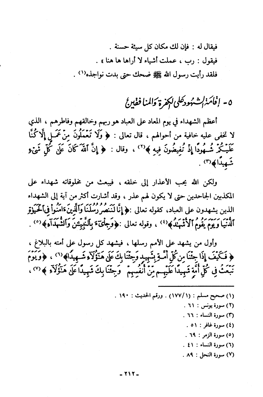 وأول من يشهد على الأمم رسلها، فيشهد كل رسول على أمته بالبلاغ، (فَكَيْفَ إِذَا جِئْنَا مِن كُلِّ أمَّةٍ بِشَهِيدٍ وَجِئْنَا بِكَ عَلَى هَؤُلاء شَهِيدًا) [النساء: 41] ، (وَيَوْمَ نَبْعَثُ فِي كُلِّ أُمَّةٍ شَهِيدًا عَلَيْهِم مِّنْ أَنفُسِهِمْ وَجِئْنَا بِكَ شَهِيدًا عَلَى هَؤُلاء) [النحل: 89] .