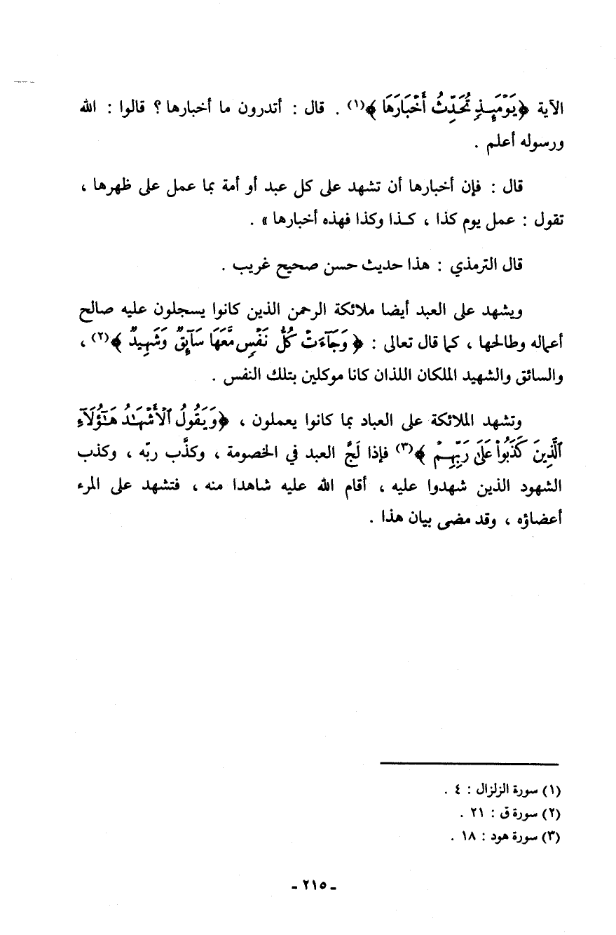 الآية (يومئذٍ تحدث أخبارها) [الزلزلة: 4] . قال: " أتدرون ما أخبارها؟ قالوا: الله ورسوله أعلم.