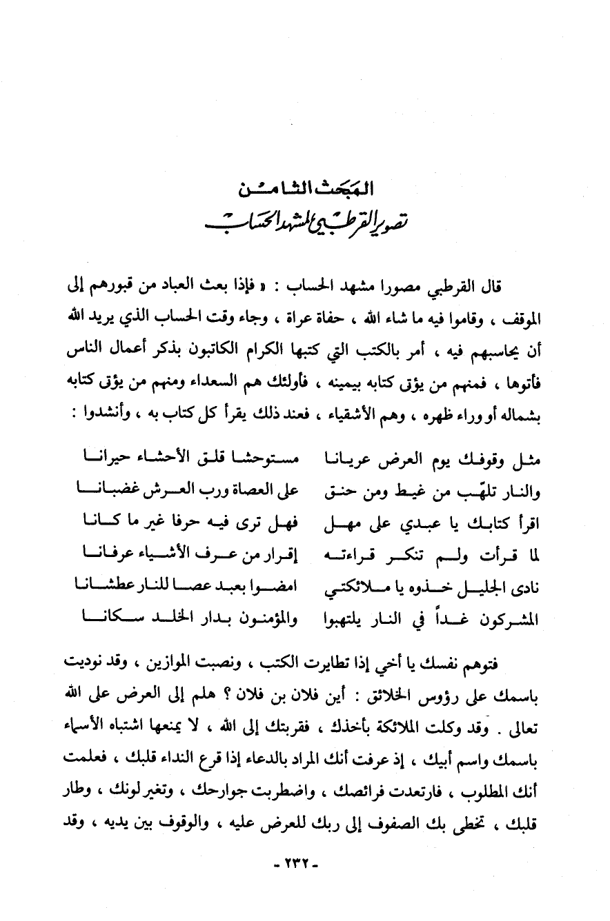 تصوير القرطبي لمشهد الحساب