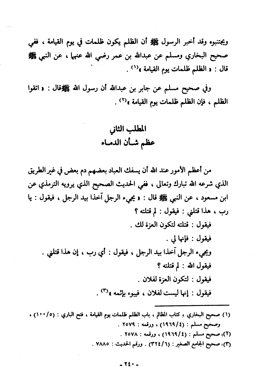 (¬1) صحيح البخاري، كتاب المظالم، باب الظلم يوم القيامة، فتح الباري: (5/100) .