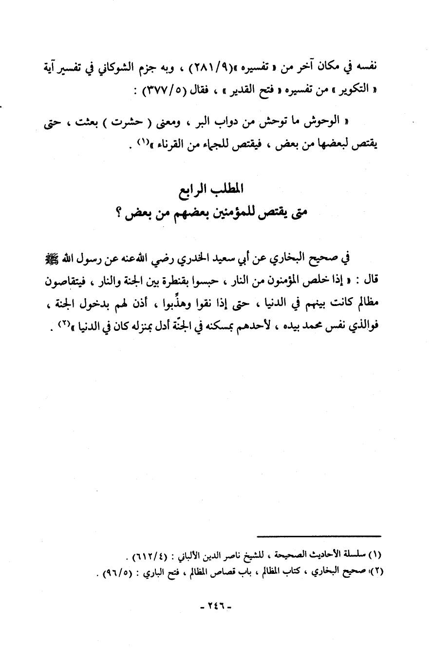 (¬2) صحيح البخاري، كتاب المظالم، باب قصاص المظالم، فتح الباري: (5/96) .