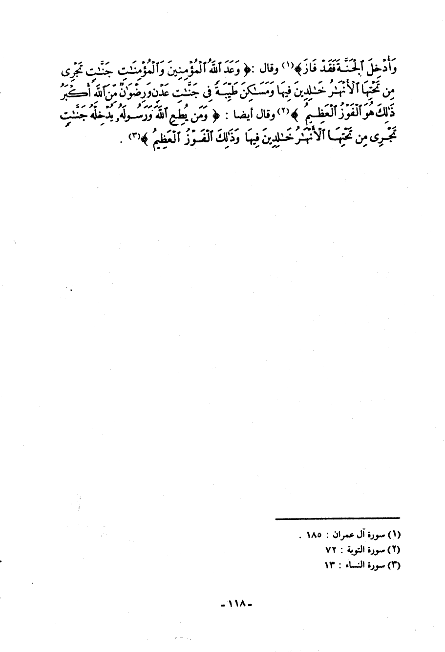 وأدخل الجنة فقد فاز) [آل عمران: 185] ، وقال: (وعد الله المؤمنين والمؤمنات جنات تجري من تحتها الأنهار خالدين فيها ومساكن طيبة في جنات عدن ورضوان من الله أكبر ذلك هو الفوز العظيم) [التوبة: 72] ، وقال أيضا: (ومن يطع الله ورسوله يدخله جنات تجري من تحتها الأنهار خالدين فيها وذلك الفوز العظيم) [النساء: 13] .