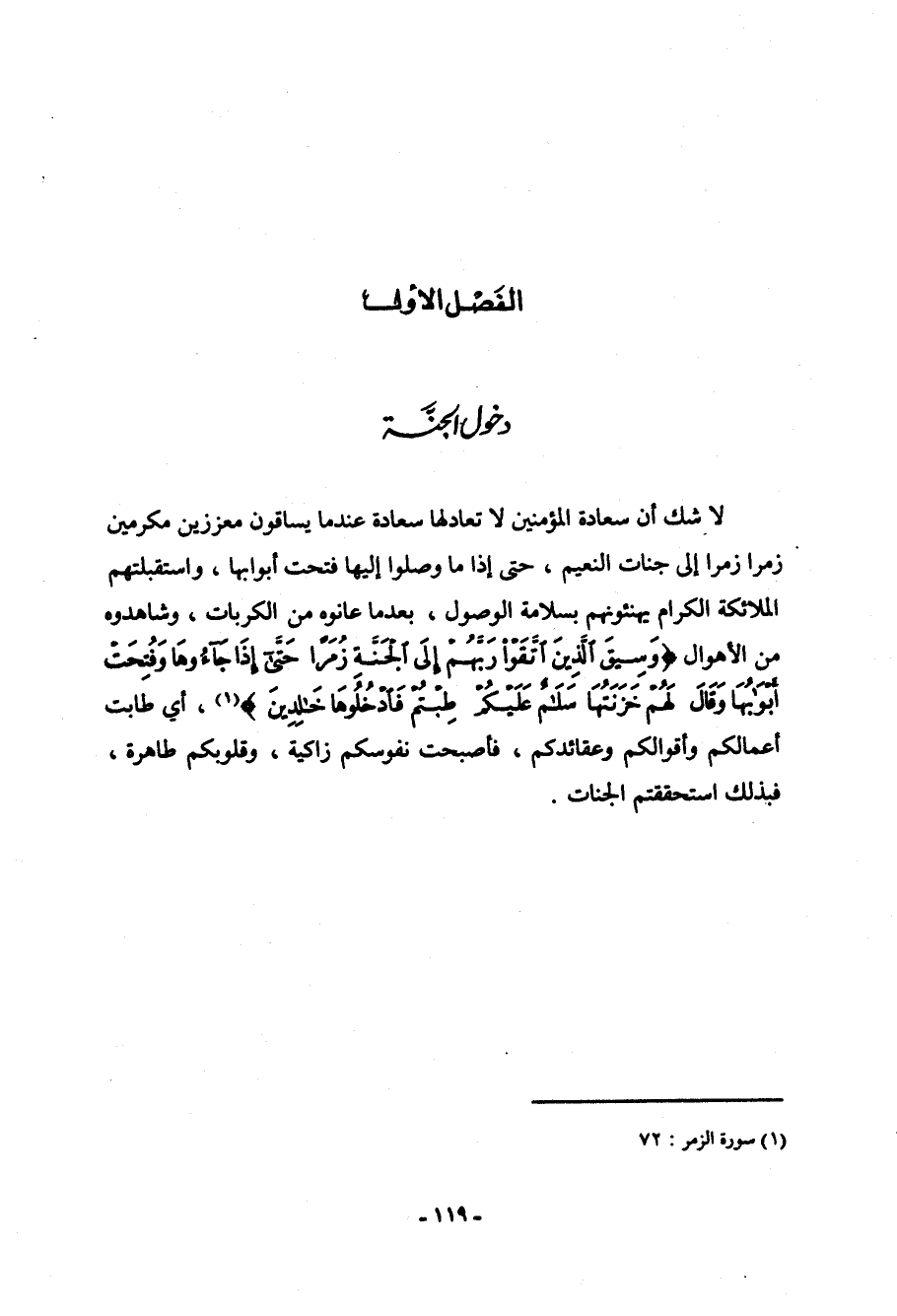 لا شك أن سعادة المؤمنين لا تعادلها سعادة عندما يساقون معززين مكرمين زمراً إلى جنات النعيم، حتى إذا ما وصلوا إليها فتحت أبوابها، واستقبلتهم الملائكة الكرام يهنئونهم بسلامة الوصول، بعدما عانوه من الكربات، وشاهدوه من الأهوال (وسيق الذين اتقوا ربهم إلى الجنة زمراً حتى إذا جاؤوها وفتحت أبوابها وقال لهم خزنتها سلام عليكم طبتم فادخلوها خالدين) [الزمر: 73] ، أي طابت أعمالكم وأقوالكم وعقائدكم، فأصبحت نفوسكم زاكية، وقلوبكم طاهرة، فبذلك استحققتم الجنات.