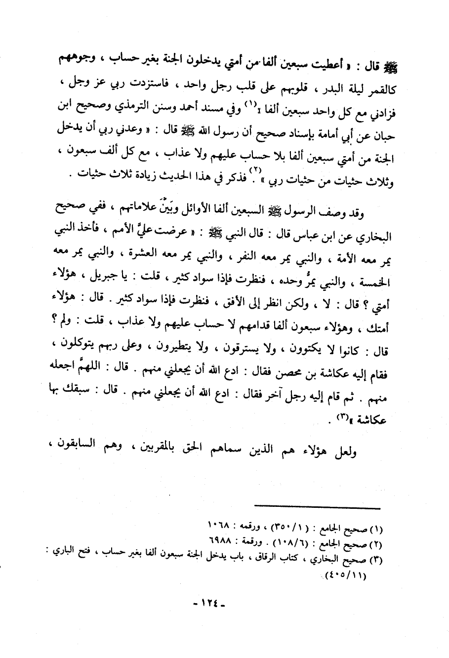 (¬3) صحيح البخاري، كتاب الرقاق، باب يدخل الجنة سبعون ألفاً بغير حساب، فتح الباري: (11/450) .