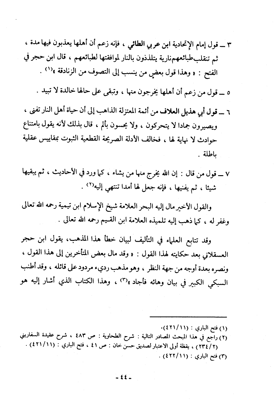 (¬2) راجع في هذا المبحث المصادر التالية: شرح الطحاوية: ص483، شرح عقيدة السفاريني (2/234) ، بقظة أولي الاعتبار لصديق حسن خان: ص41، فتح الباري: (11/421) .