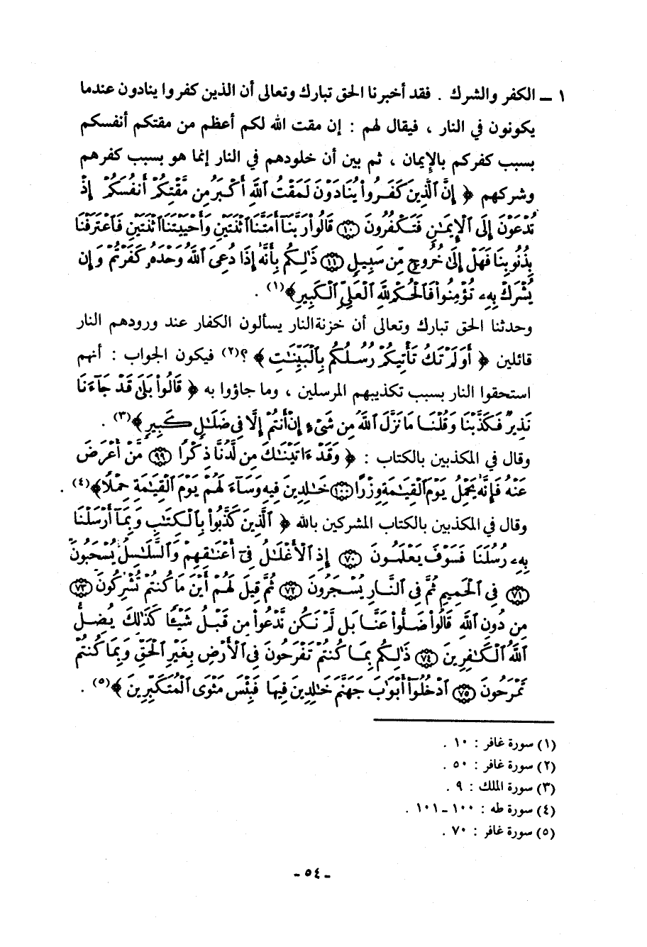 وقال في المكذبين بالكتاب المشركين بالله: (الذين كذبوا بالكتاب وبما أرسلنا به رسلنا فسوف يعلمون*إذ الأغلال في أعناقهم والسلاسل يسحبون* في الحميم ثم في النار يسجرون* ثم قيل لهم أين ما كنتم تشركون* من دون الله قالوا ضلوا عنا بل لم نكن ندعوا من قبل شيئاً كذلك يضل الله الكافرين* ذلكم بما كنتم تفرحون في الأرض بغير الحق وبما كنتم تمرحون* ادخلوا أبواب جهنم خالدين فيها فبئس مثوى المتكبرين) [غافر: 70-76] .