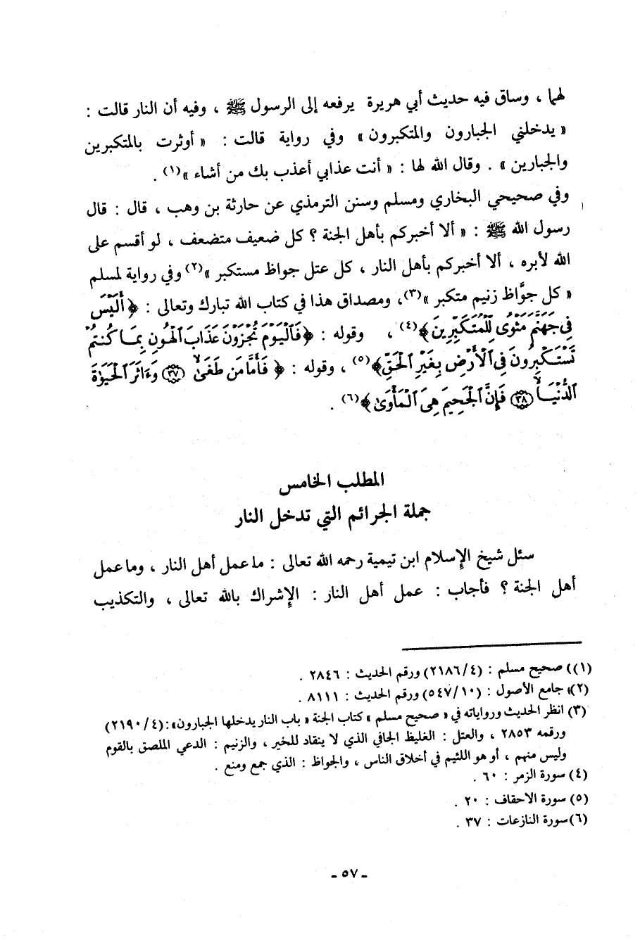 المطلب الخامس: جملة الجرائم التي تدخل النار