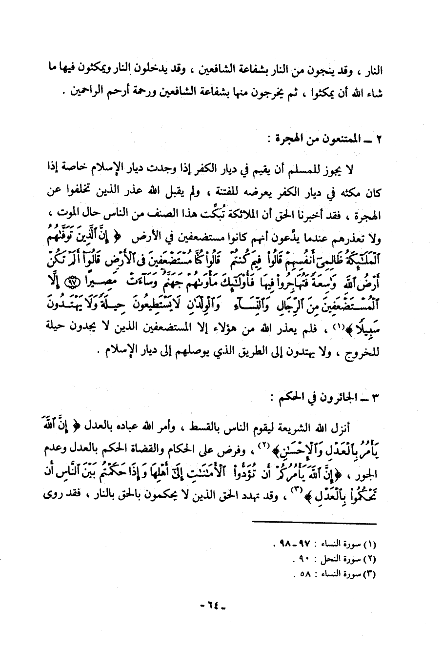 لا يجوز للمسلم أن يقيم في ديار الكفر إذا وجدت ديار الإسلام خاصة إذا كان مكثه في ديار الكفر يعرضه للفتنة، ولم يقبل الله الذين تخلفوا عن الهجرة، فقد أخبرنا الحق أن الملائكة تُبَكّت هذا الصنف من الناس حال الموت، ولا تعذرهم عندما يدعون أنهم كانوا مستضعفين في الأرض (إن الذين توفاهم الملائكة ظالمي أنفسهم قالوا فيم كنتم قالوا كنا مستضعفين في الأرض قالوا ألم تك أرض الله واسعة فتهاجروا فيها فأولئك مأواهم جهنم وساءت مصيراً * إلا المستضعفين من الرجال والنساء والولدان لا يستطيعون حيلة ولا يهتدون سبيلا) [النساء: 97 - 98] ، فلم يعذر الله من هؤلاء إلا المستضعفين الذين لا يجدون حيلة للخروج، ولا يهتدون إلى الطريق الذي يوصلهم إلى ديار الإسلام.