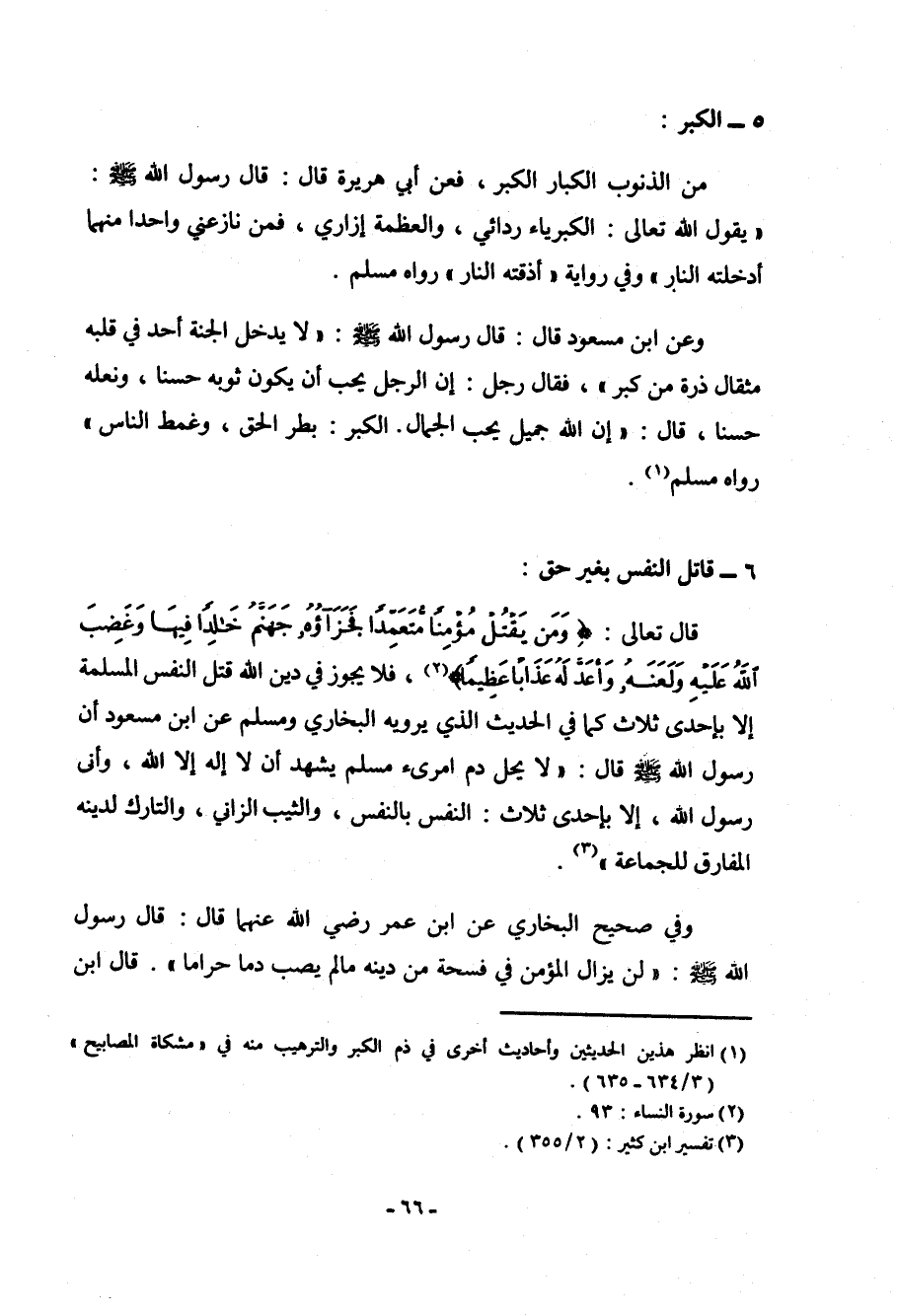 (¬1) انظر هذين الحديثين وأحاديث أخرى في ذم الكبر والترهيب منه في (مشكاة المصابيح) (3/634-635) . وهو في مسلم برقم: 91.
