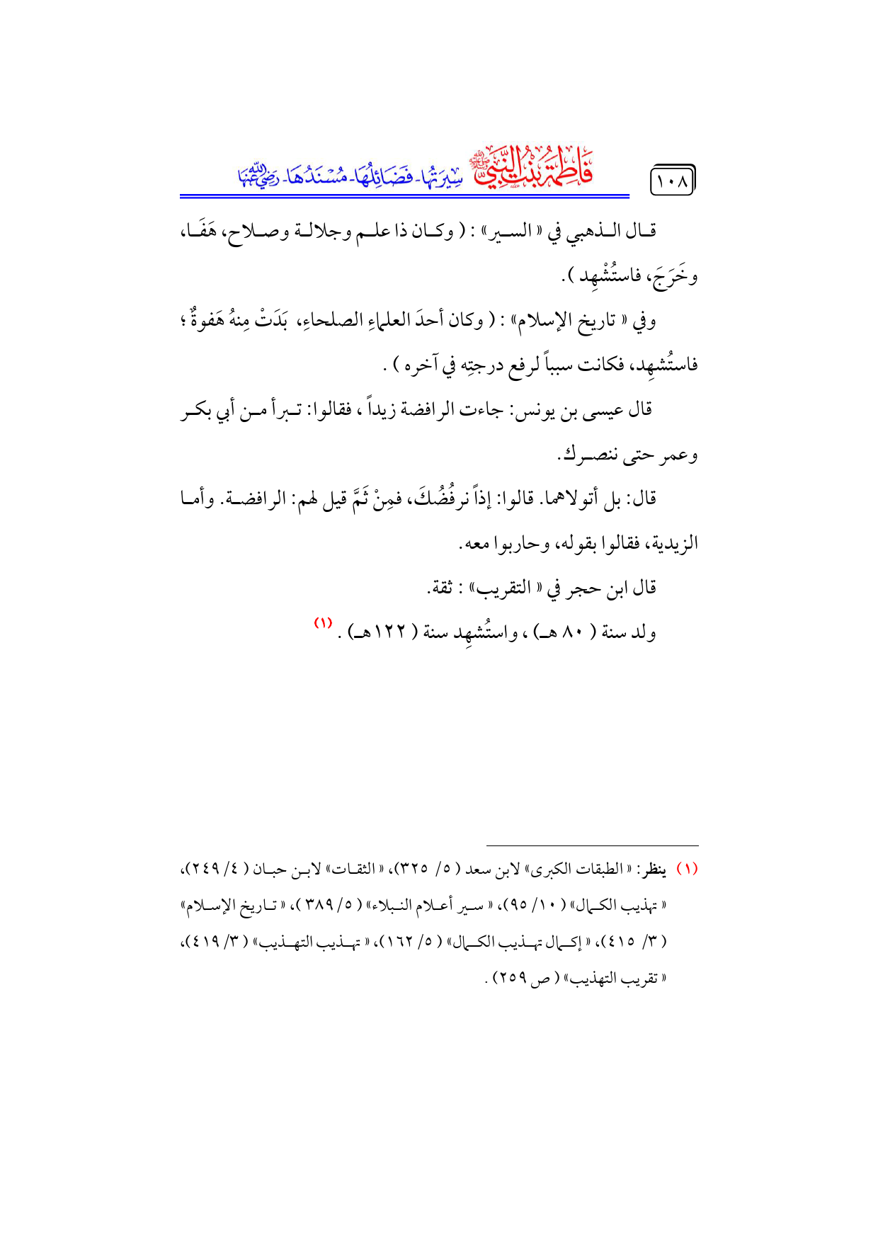 كتاب فاطمة بنت النبي - صلى الله عليه وسلم - سيرتها، فضائلها، مسندها - رضي الله عنها - (اسم الجزء: 6)