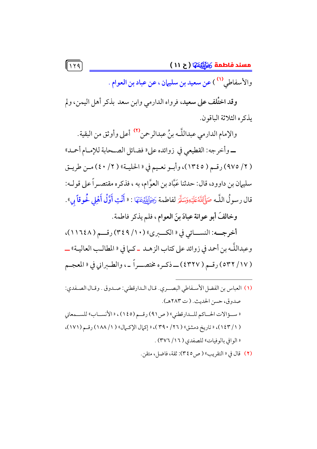(¬١) العباس بن الفضل الأسفاطي البصري. قال الدارقطني: صدوق. وقال الصفدي: صدوق، حسن الحديث. (ت ٢٨٣ هـ).