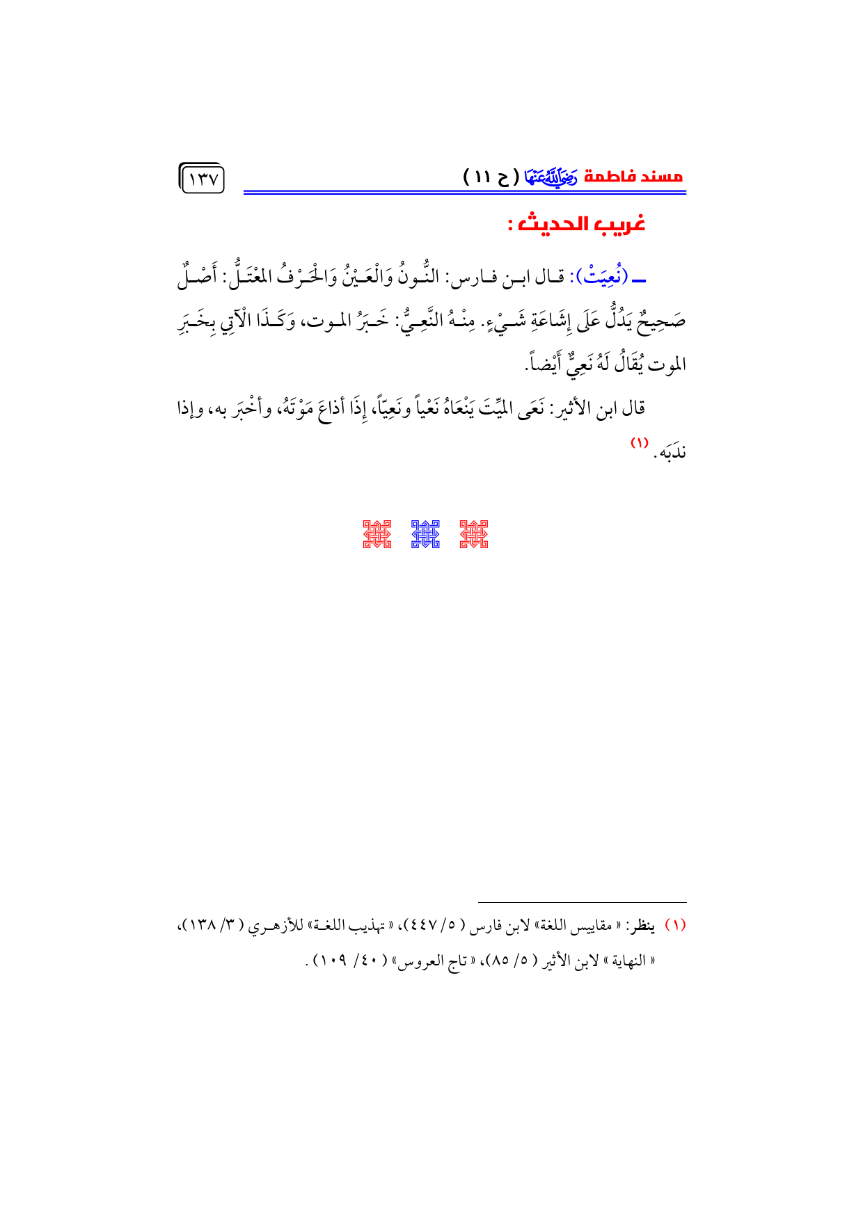 (¬١) ينظر: «مقاييس اللغة» لابن فارس (٥/ ٤٤٧)، «تهذيب اللغة» للأزهري (٣/ ١٣٨)، «النهاية» لابن الأثير (٥/ ٨٥)، «تاج العروس» (٤٠/ ١٠٩).