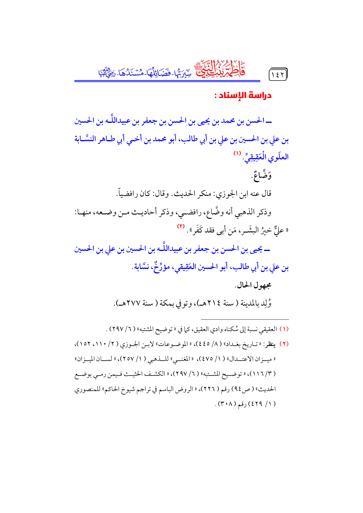 كتاب فاطمة بنت النبي - صلى الله عليه وسلم - سيرتها، فضائلها، مسندها - رضي الله عنها - (اسم الجزء: 6)