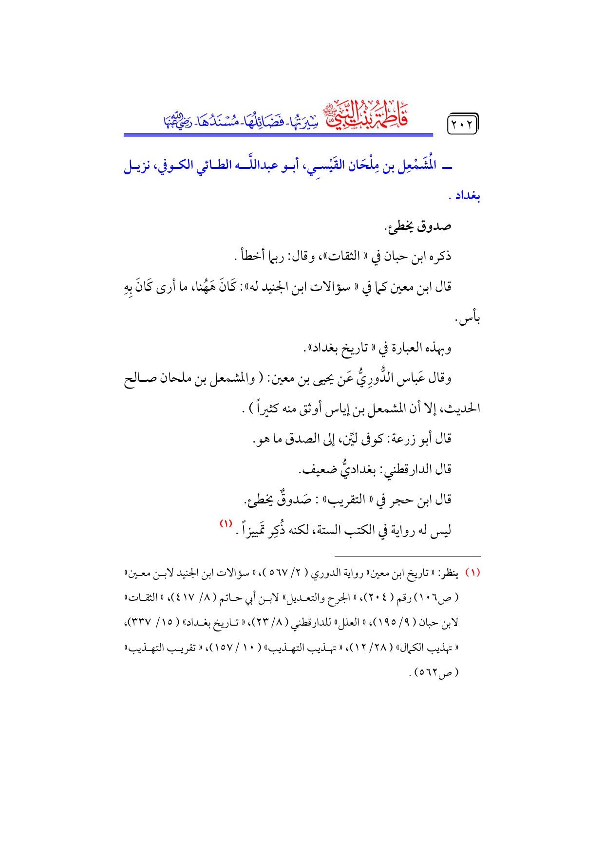 كتاب فاطمة بنت النبي - صلى الله عليه وسلم - سيرتها، فضائلها، مسندها - رضي الله عنها - (اسم الجزء: 6)