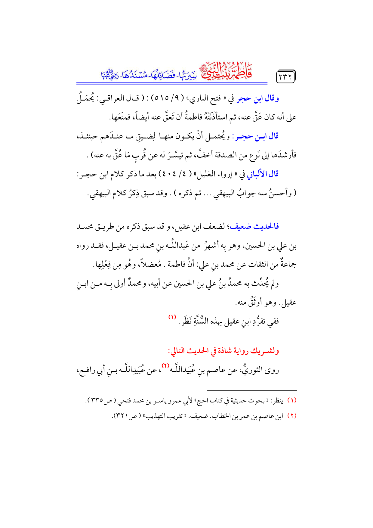 كتاب فاطمة بنت النبي - صلى الله عليه وسلم - سيرتها، فضائلها، مسندها - رضي الله عنها - (اسم الجزء: 6)