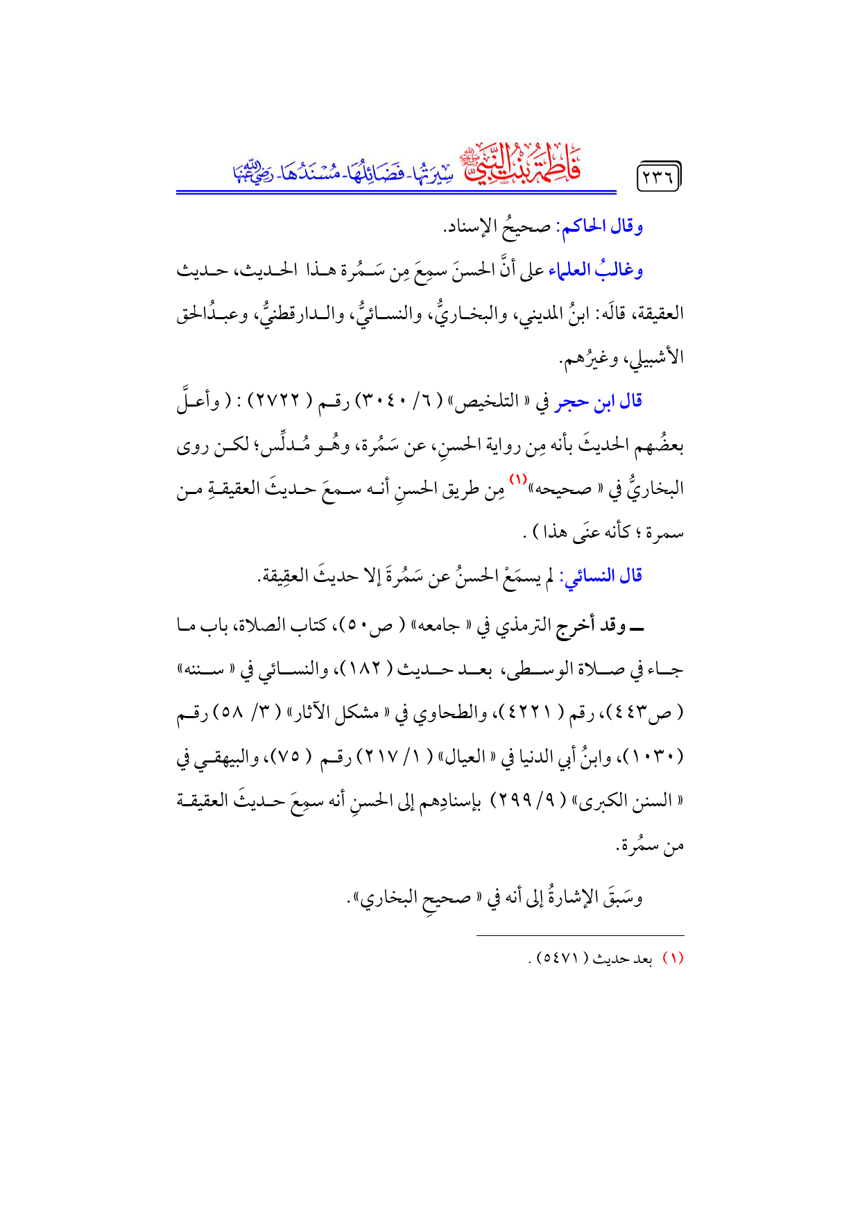 كتاب فاطمة بنت النبي - صلى الله عليه وسلم - سيرتها، فضائلها، مسندها - رضي الله عنها - (اسم الجزء: 6)