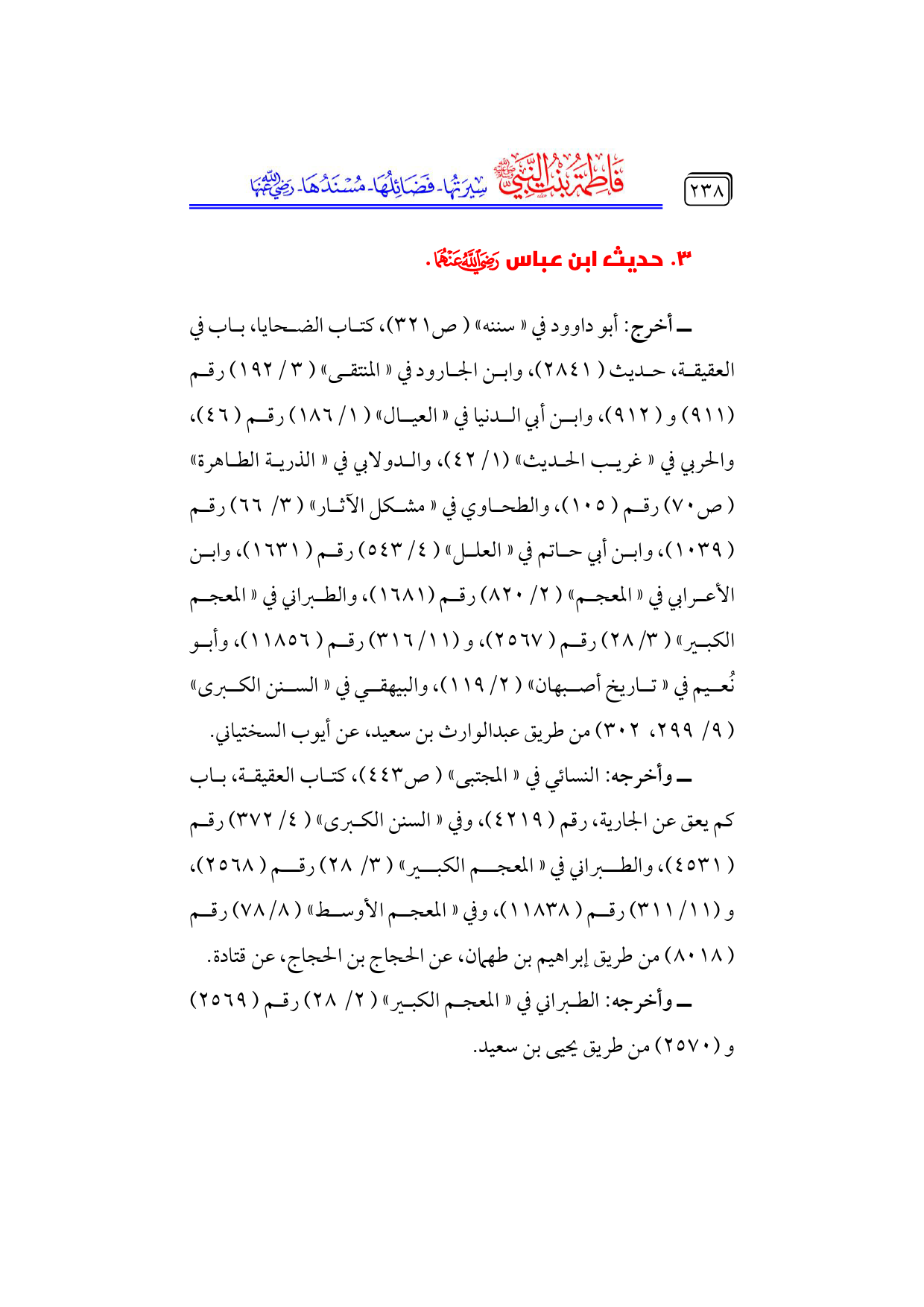 كتاب فاطمة بنت النبي - صلى الله عليه وسلم - سيرتها، فضائلها، مسندها - رضي الله عنها - (اسم الجزء: 6)