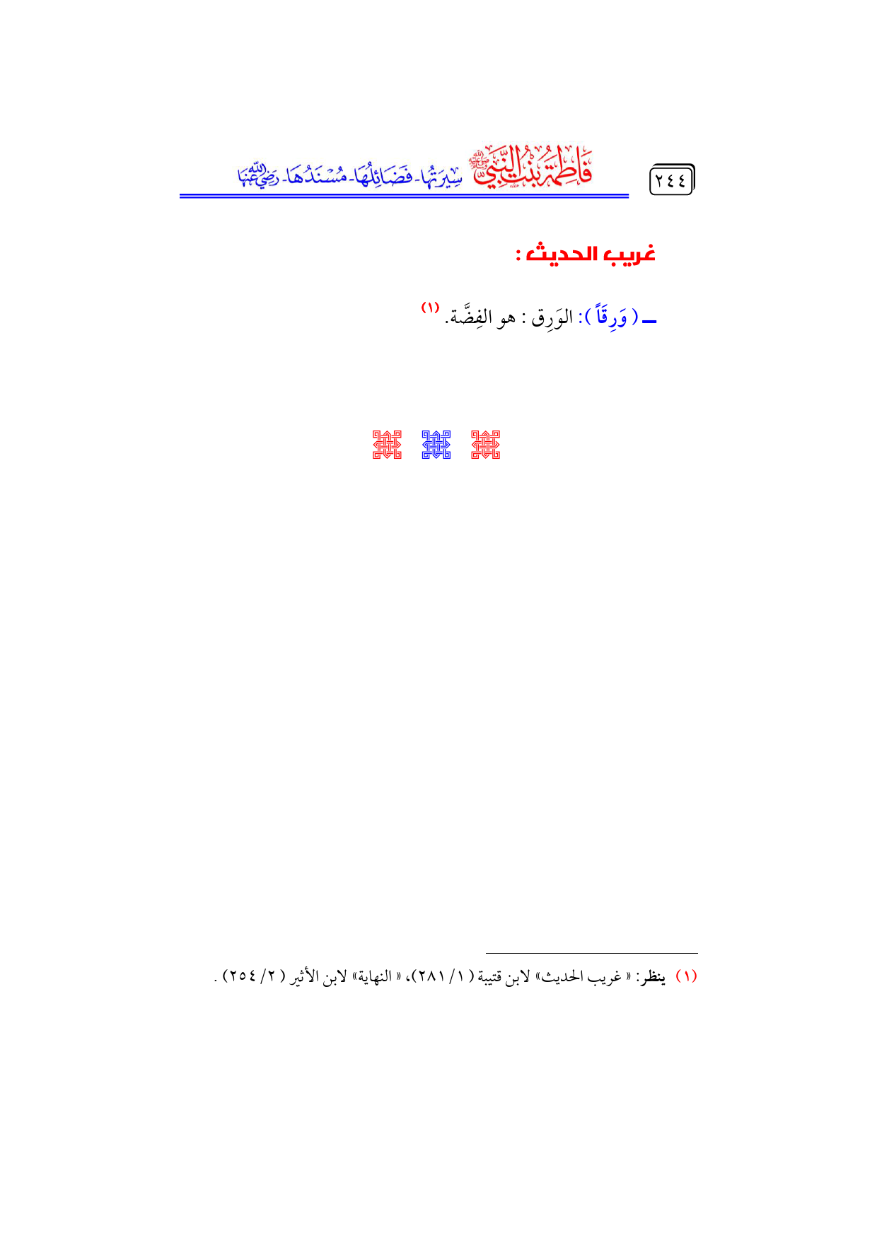 (¬١) ينظر: «غريب الحديث» لابن قتيبة (١/ ٢٨١)، «النهاية» لابن الأثير (٢/ ٢٥٤).