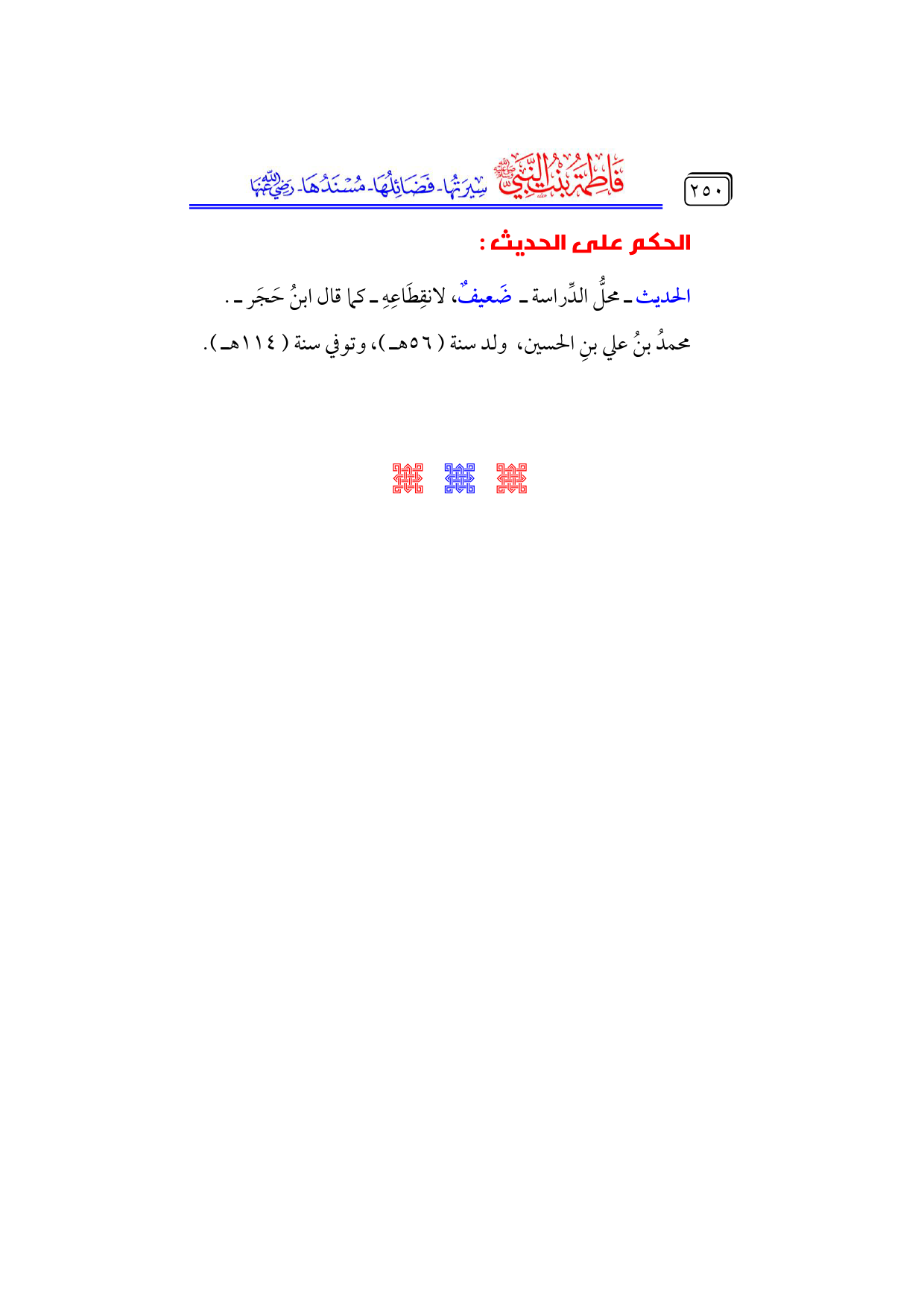 كتاب فاطمة بنت النبي - صلى الله عليه وسلم - سيرتها، فضائلها، مسندها - رضي الله عنها - (اسم الجزء: 6)