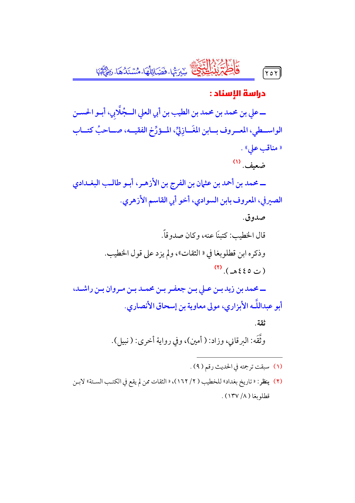 (¬٢) ينظر: «تاريخ بغداد» للخطيب (٢/ ١٦٢)، «الثقات ممن لم يقع في الكتب الستة» لابن قطلوبغا (٨/ ١٣٧).