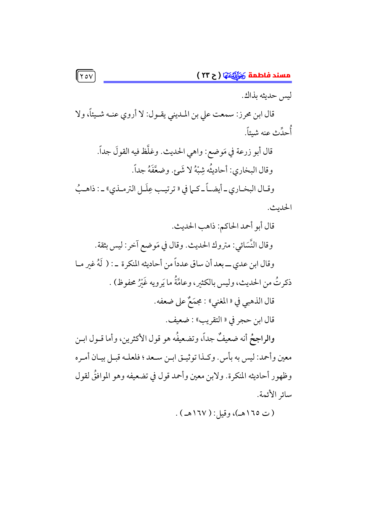 وقال البخاري: أحاديثُه شِبْهُ لا شَئ. وضعَّفَهُ جداً.