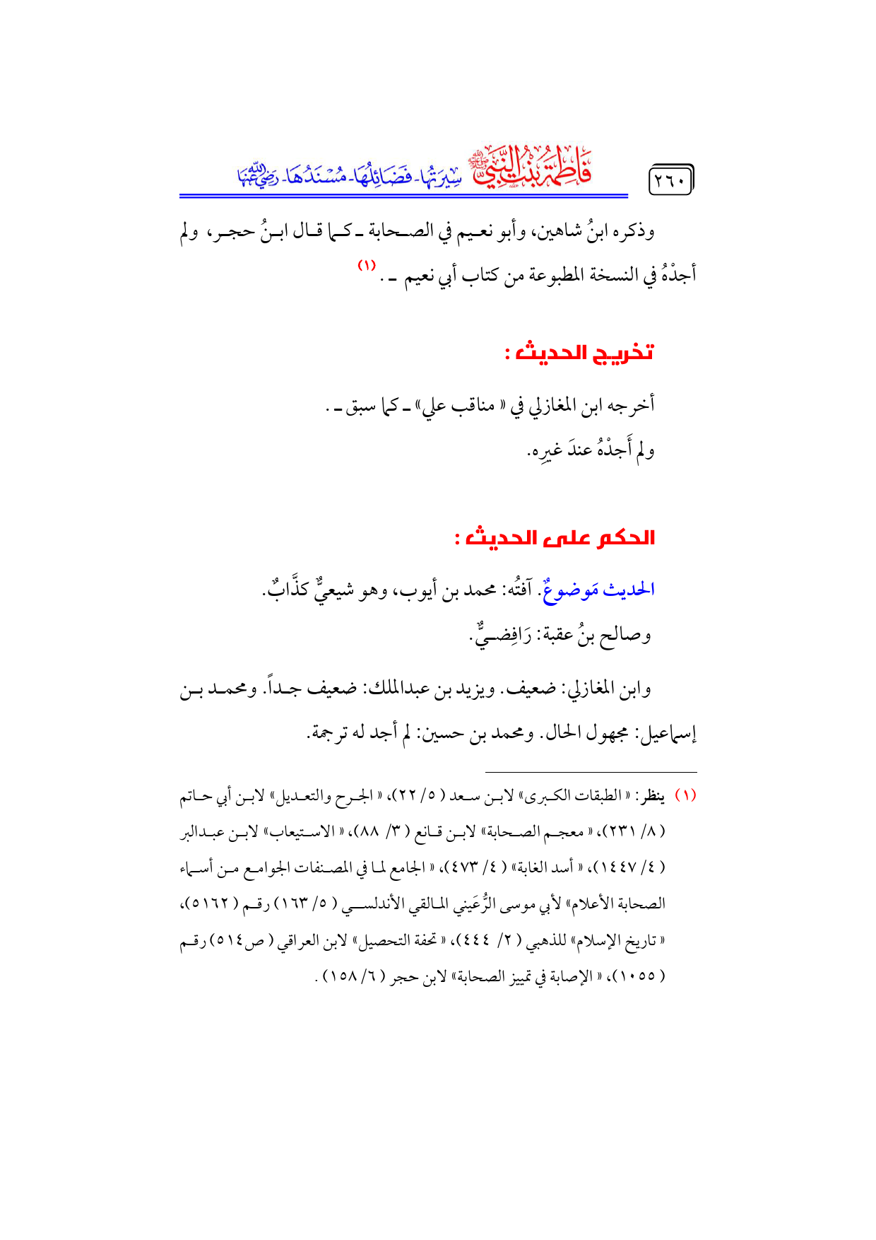 كتاب فاطمة بنت النبي - صلى الله عليه وسلم - سيرتها، فضائلها، مسندها - رضي الله عنها - (اسم الجزء: 6)
