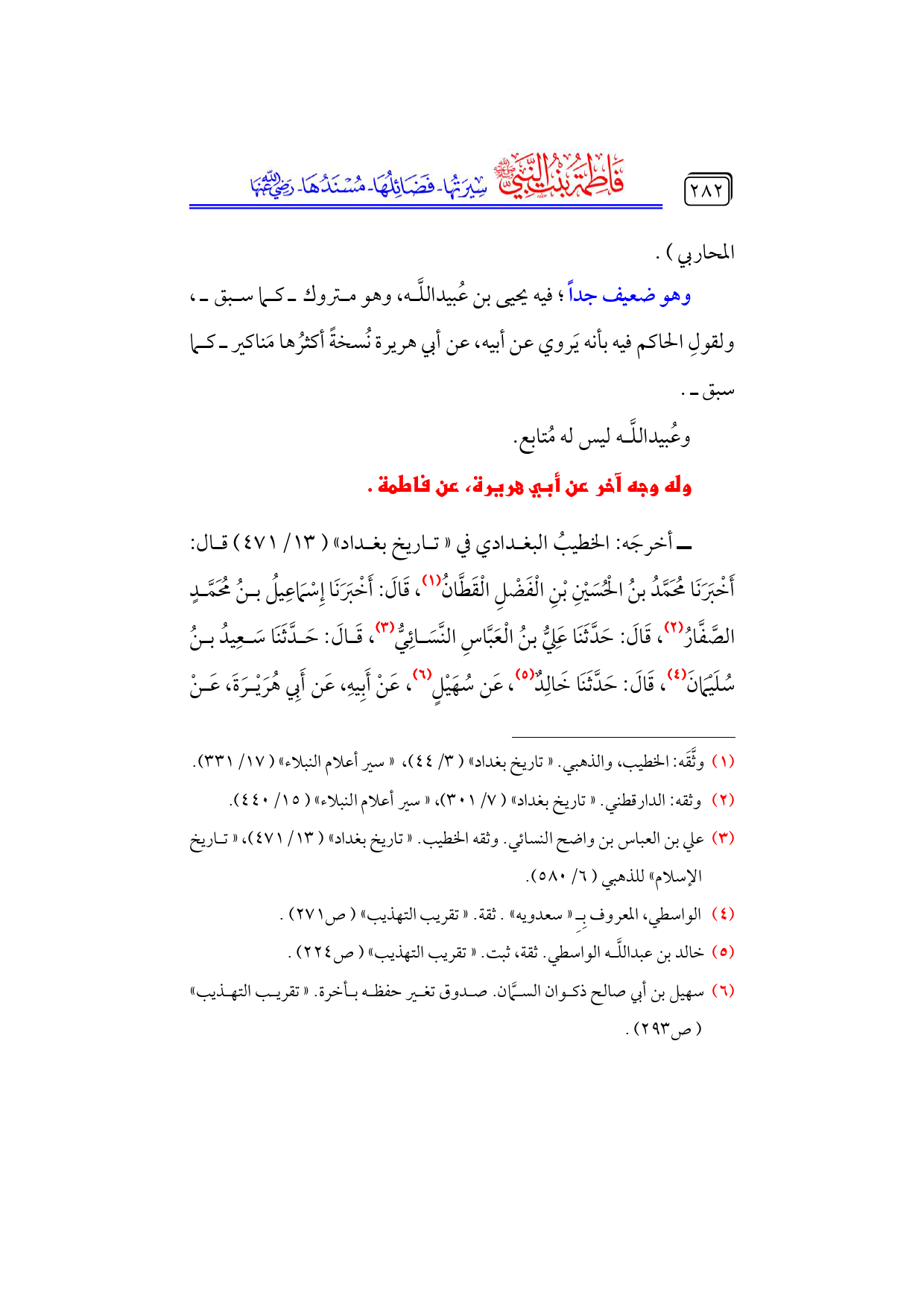 كتاب فاطمة بنت النبي - صلى الله عليه وسلم - سيرتها، فضائلها، مسندها - رضي الله عنها - (اسم الجزء: 6)