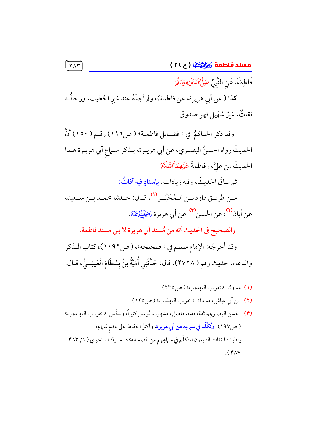 كتاب فاطمة بنت النبي - صلى الله عليه وسلم - سيرتها، فضائلها، مسندها - رضي الله عنها - (اسم الجزء: 6)
