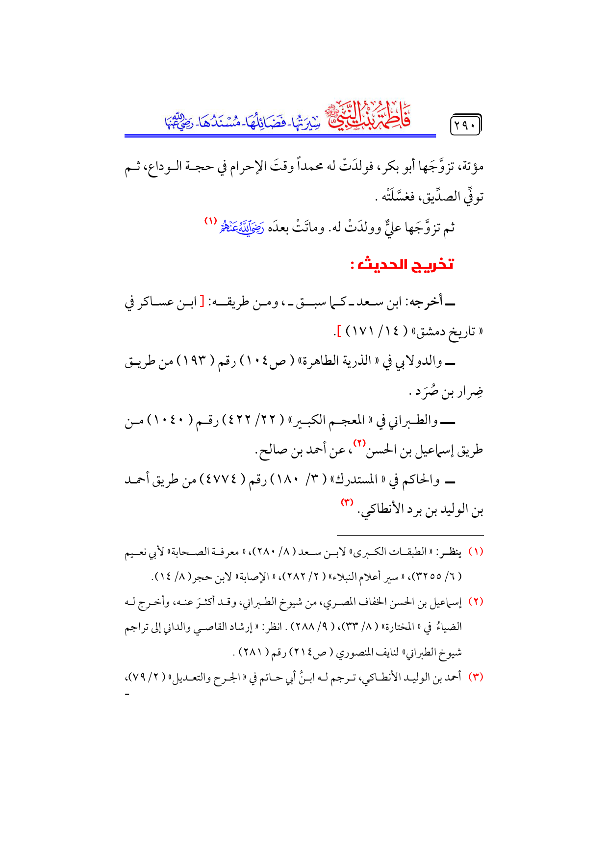 كتاب فاطمة بنت النبي - صلى الله عليه وسلم - سيرتها، فضائلها، مسندها - رضي الله عنها - (اسم الجزء: 6)