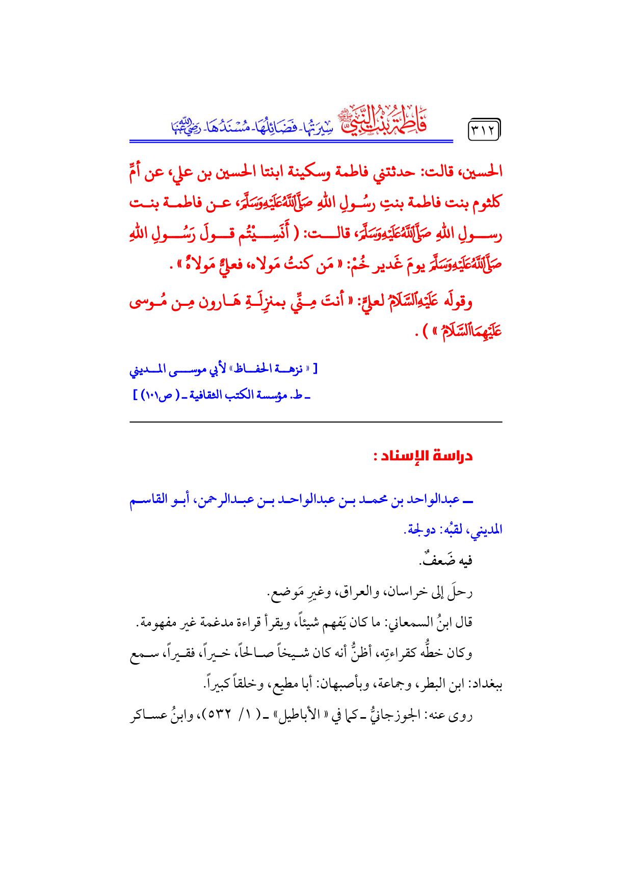 [«نزهة الحفاظ» لأبي موسى المديني ... ـ ط. مؤسسة الكتب الثقافية ـ (ص ١٠١)]