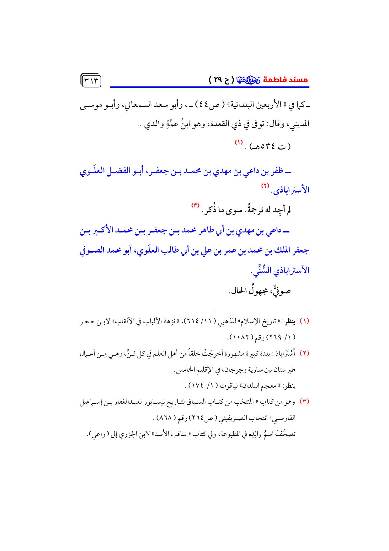 ــ ظفر بن داعي بن مهدي بن محمد بن جعفر، أبو الفضل العلَوي الأستراباذي. (¬٢)